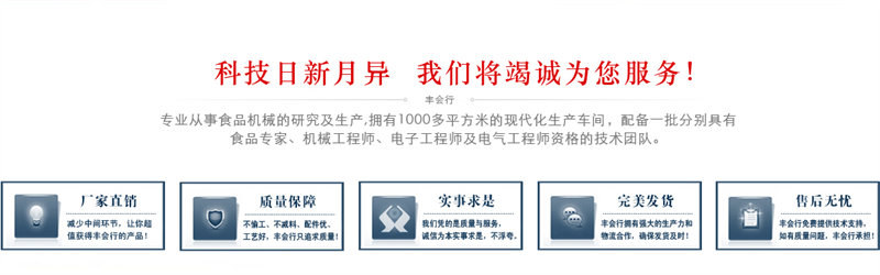 廣東豐會(huì)行智能裝備有限公司,廣州永豐廚具設(shè) 備 于 1997年 廠辦 , 專業(yè)從事食品機(jī)械的研究及生產(chǎn)。本廠擁有1000多平方米的現(xiàn)代化 生產(chǎn)車間,配備一批分別具有食品專家,機(jī)械工程師,電子工程師 質(zhì)的產(chǎn)品生產(chǎn)及售后服務(wù)的專業(yè)隊(duì)伍,從而為客戶服務(wù)提供優(yōu)質(zhì)的 及電氣...